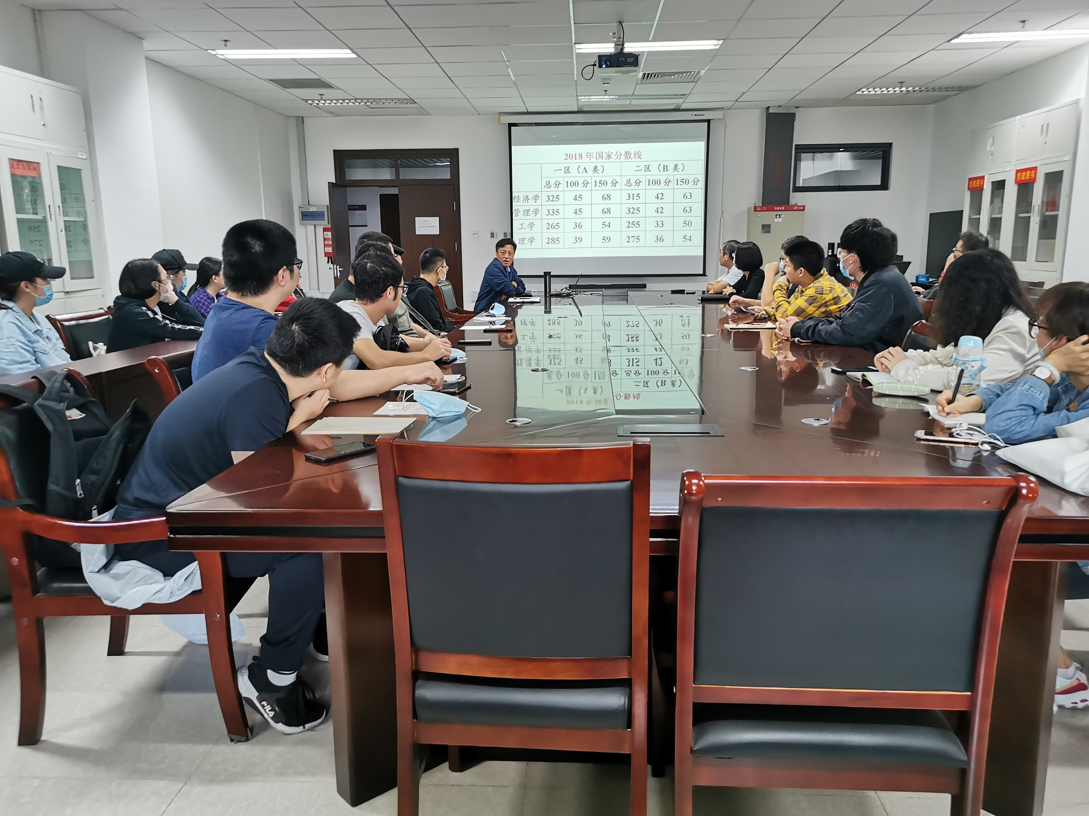 会上,刘喜波教授针对考研同学当前正在预报名这个阶段,结合近十年全国考研报名人数和录取比例等相关数据,重点就报考前学校与专业如何选择、新大纲调整对考研出题带来的变化、当前备考冲刺阶段节奏的把握、下步进入考场后心态的如何调整与同学们进行了详细讲解并提出建设性意见。他希望同学们在报考学校和专业的选择上,要提前收集报考院校、专业的相关信息,做到量力而行,准确定位,有的放失。随后,同学们就当前考研备考中存在的问题和与会老师进行一对一的咨询交流。
