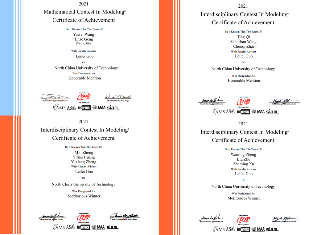 近日,由美国数学及其应用联合会主办的2021年国际大学生数学建模竞赛(MCM/ICM)成绩揭晓。买球官网有7个代表队参赛,共获得一等奖(Meritorious Winner)2项、二等奖(Honorable Mention)2项。