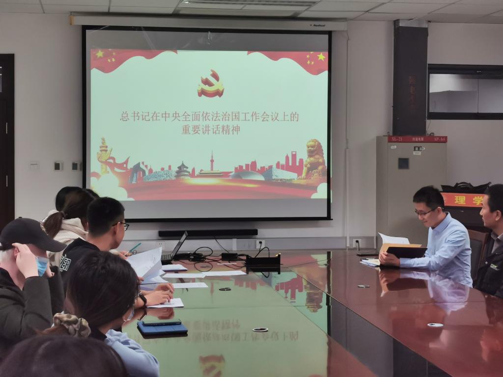12月10日下午,买球官方网站党委统一部署,分头组织全院9个党支部专题学习了习近平法治思想,就《习近平总书记在中央全面依法治国工作会议上的重要讲话精神》和《宪法》基本知识进行了重点学习和深入交流。