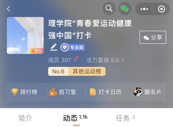 第一期比拼中理院学子共有8人获得核心力量达人称号,占全校获奖同学的三分之一,累计参与人次居全校第一,在此过程中,同学们积极关注、踊跃参与、认真准备,以持之以恒的锻炼保持健康体魄,以酣畅饱满的精神迎接美好未来。在打卡视频中,同学们都十分认真,动作非常标准,展现了理院学子积极参与体育运动“拼搏,进取,青春,活力”的精神风貌,很多同学都养成了坚持锻炼的好习惯。