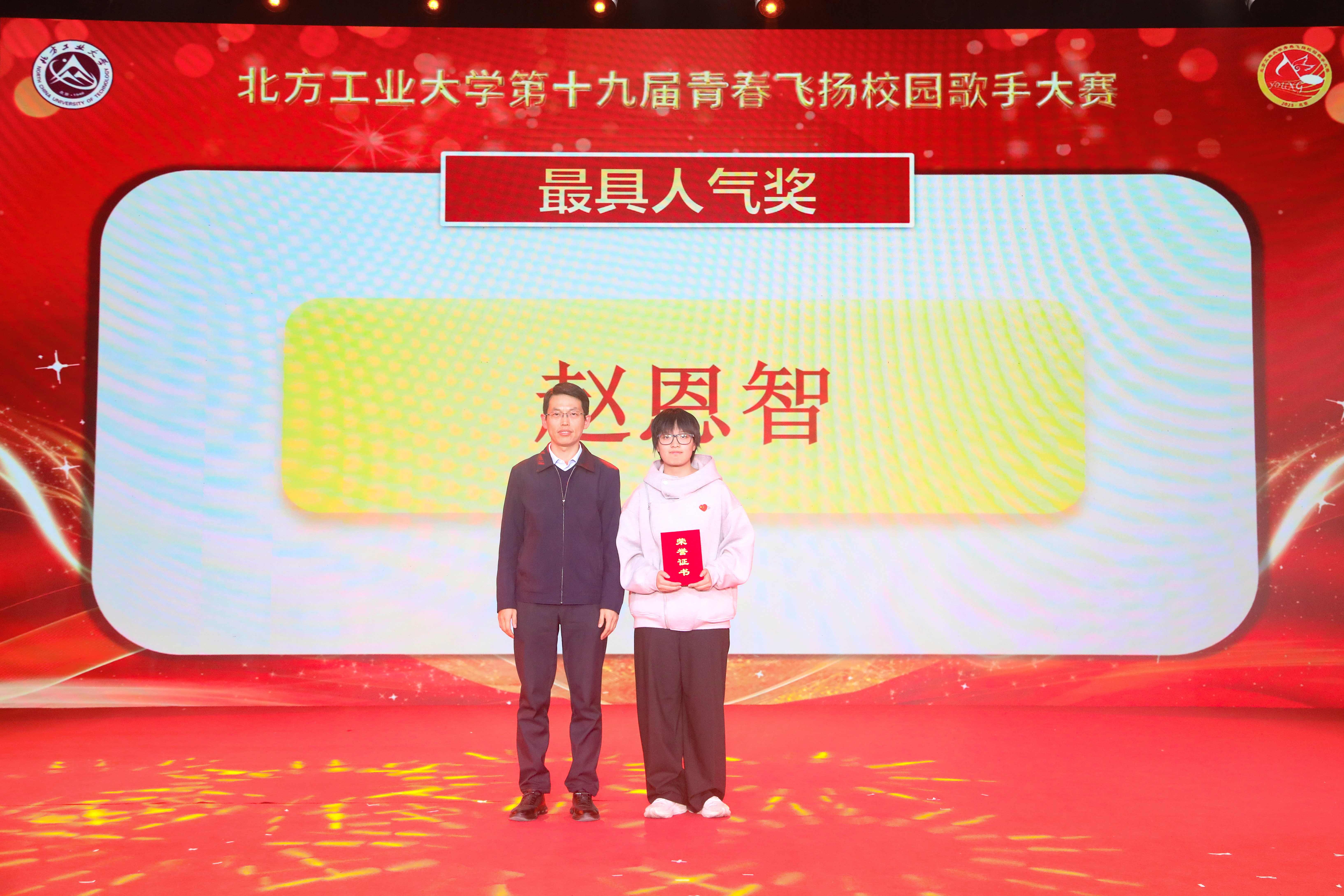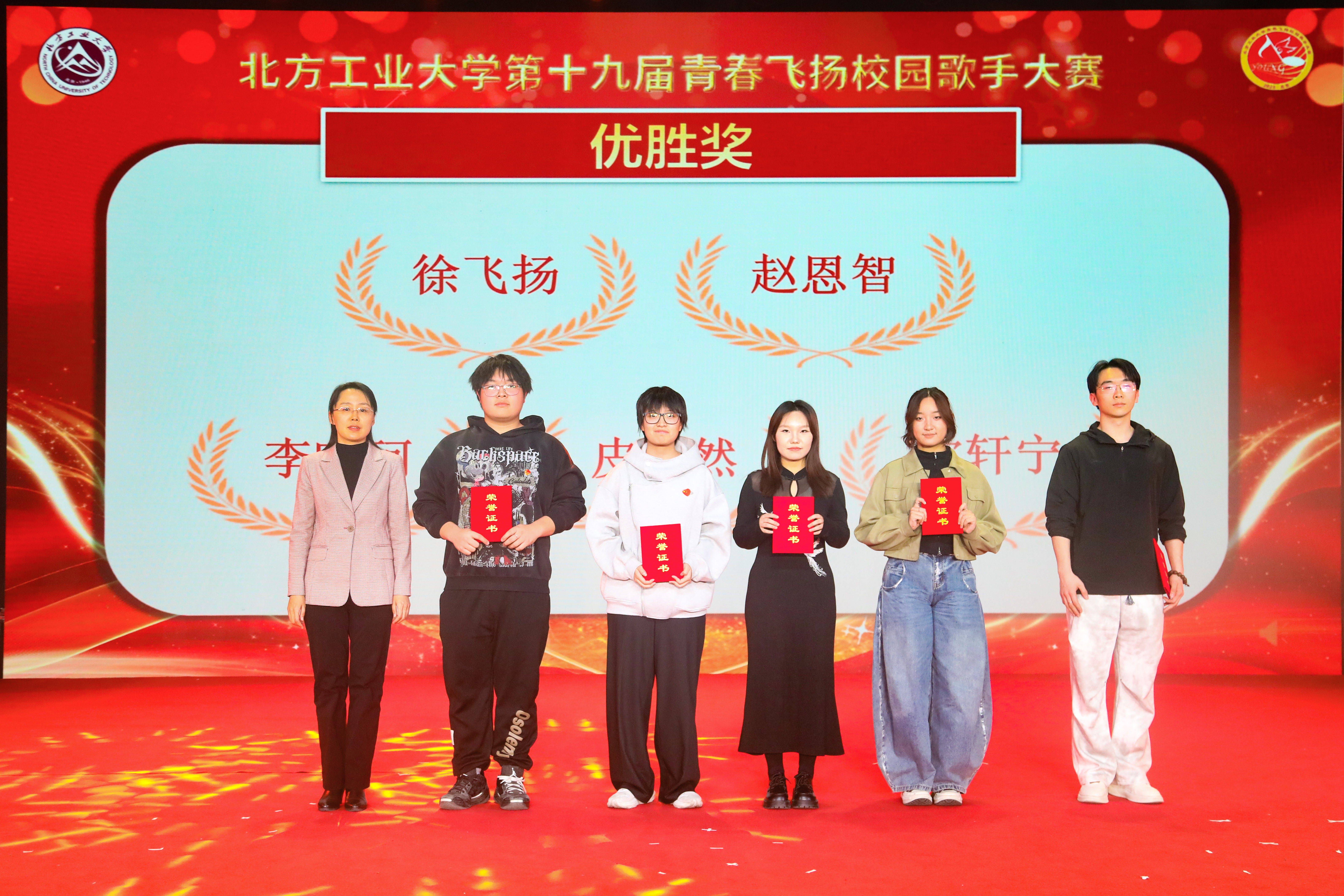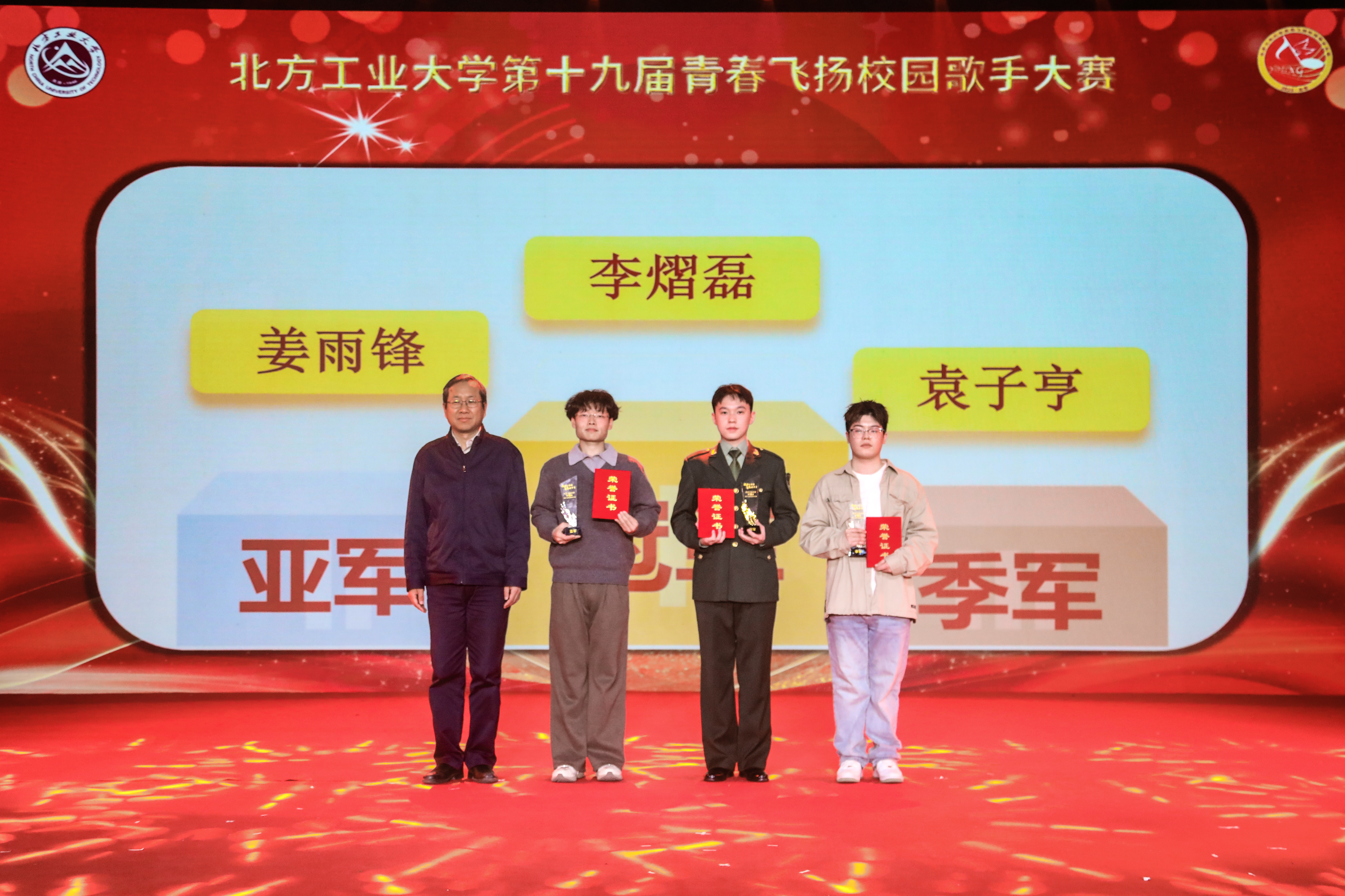 经过激烈比拼,最终李熠磊、姜雨锋、袁子亨分别获得了此次比赛的冠亚季军;赵恩智获得了最具人气奖;徐飞扬、赵恩智、李昀珂、皮浩然、常轩宁获得了优胜奖;校党委副书记史贞军、学工部(研工部)部长孙宗瑞、校团委书记杨超为获奖选手颁奖。
