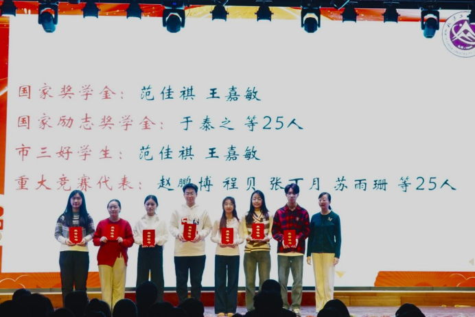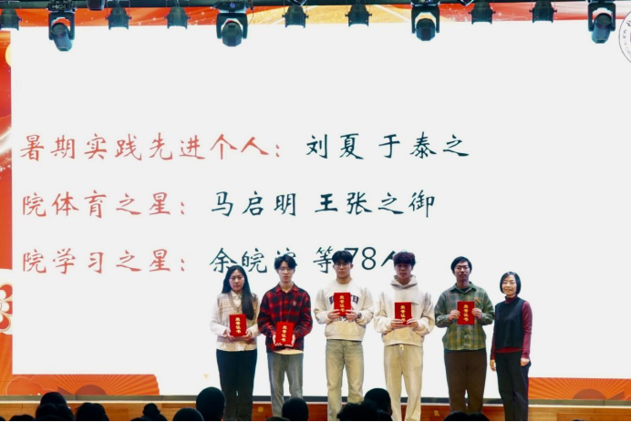 表彰环节中,学院对获得国家奖学金、国家励志奖学金、市级三好学生等重大奖项的学子,以及在“一二·九”、“五四”评优中表现突出的先进个人与集体、暑期社会实践先进个人、院体育之星、院学习之星进行了表彰,与会领导为获奖学生代表颁授荣誉证书。