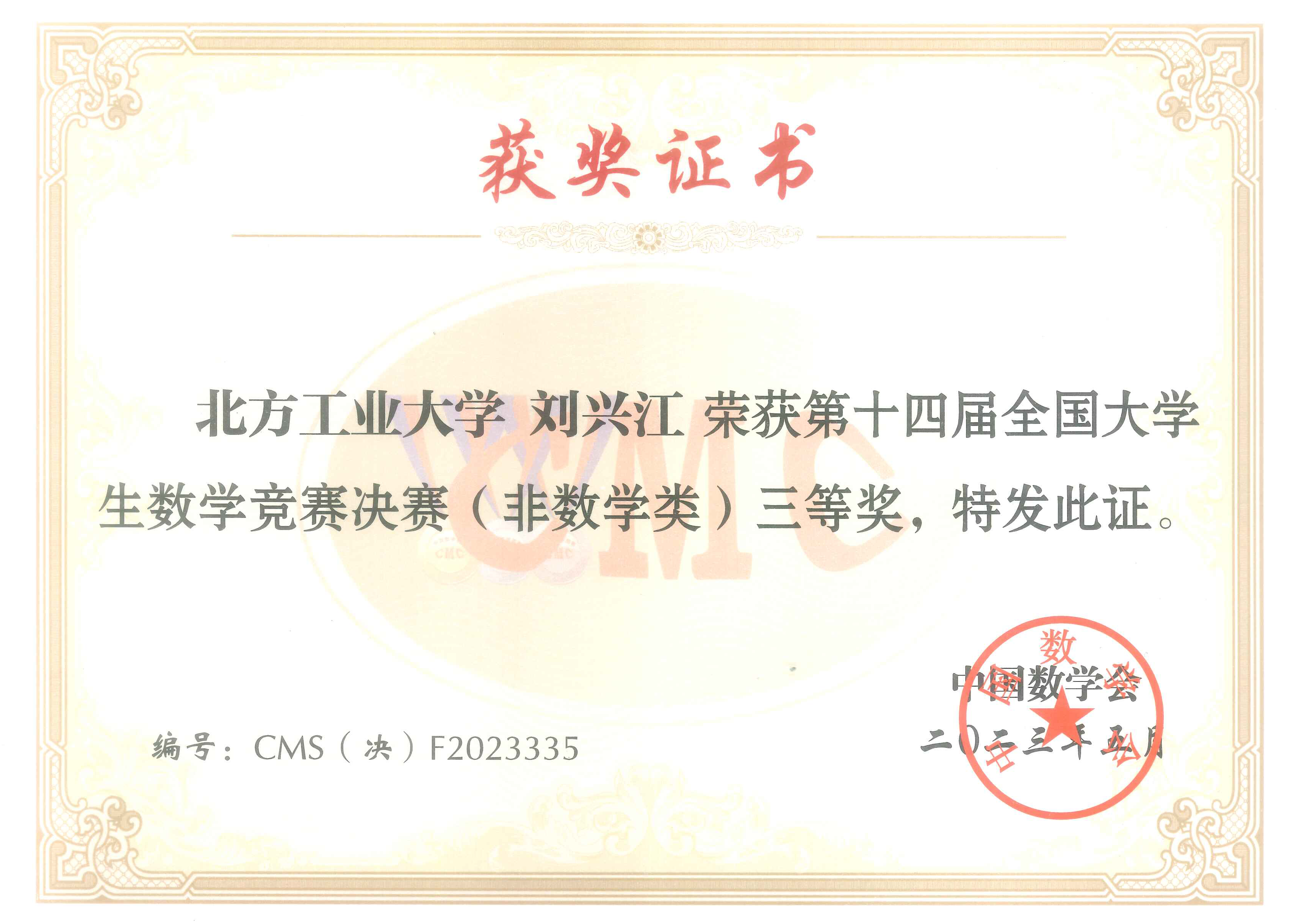 5月26日至28日,第十四届全国大学生数学竞赛决赛在广东工业大学成功举行。买球官网电气与控制工程学院刘兴江同学作为北京赛区参赛代表之一参加了此次竞赛,并最终取得了非数学类全国三等奖的优异成绩。这是自全国大学生数学竞赛举办以来买球官网学生首次入围决赛并成功获奖。