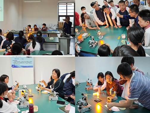 在电物理实验室,老师们为学生讲解头发丝直径测量实验的原理,指导学生亲自动手实践,同学们兴趣高涨,驻足围观,尝试动手实际操作,沉浸式体验了物理的魅力。