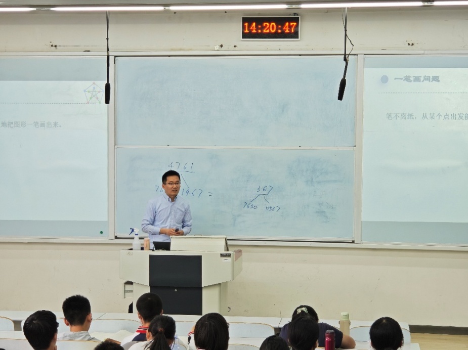 在瀚学楼,徐鑫老师为同学们开展了生动有趣的数学学术讲座,通过生活化的案例、趣味数学游戏和建模演示,带领学生突破公式的桎梏,感受数学在社交网络分析、神经结构等领域的强大应用价值。