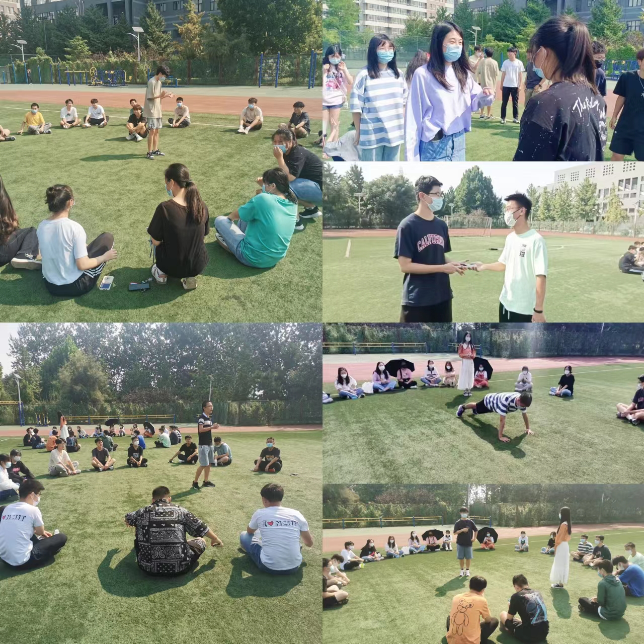 上午十点,拓展活动准时开始,“定时炸弹”让同学们在紧张与刺激的氛围中快速认识身边的人;“逢七过”让同学们脑力大开,全神贯注地投入到游戏中;“击鼓传花”时大家围成一个寓意理院一家亲的大圈,感受家人般的亲切与欢乐;“你画我猜”加深了同学们间的默契。游戏活动期间,同学们积极参与,一个一个热情洋溢、欢歌笑语,熙熙攘攘的人群顿时让校园小操场充满了活力。