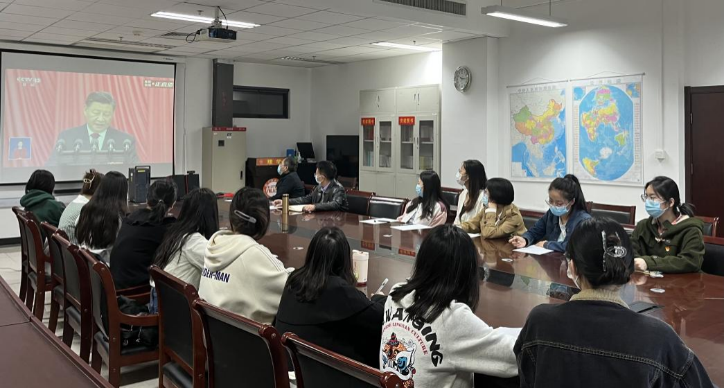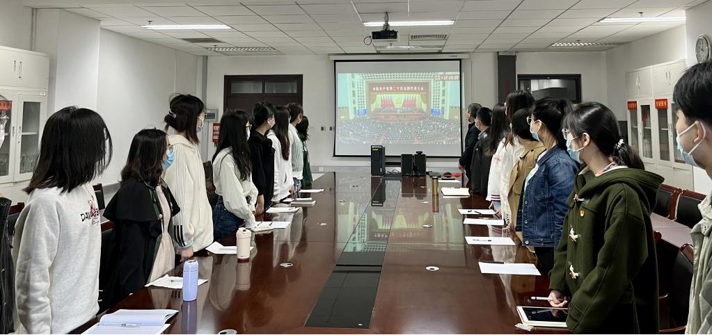 买球官方网站党委在严格落实疫情防控要求的基础上统筹谋划、严格部署,精心组织师生收听收看党的二十大开幕会盛况。学院党委和部分学生党员代表在博远楼805收看了大会盛况,各党支部通过各种方式组织师生同步收听收看。