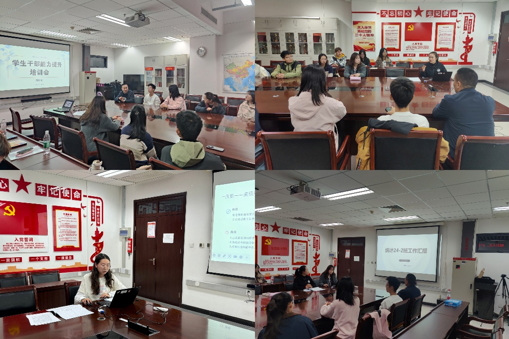 为了进一步加强2024级班级的建设工作,全面提升新生班委的综合素质水平,买球官方网站于11月7日在博远楼805开展2024级学生干部培训会,学院党委副书记贺映勇、24级辅导员夏丹梅、统研23级班长王可莹和2024级新生班委参加了会议。