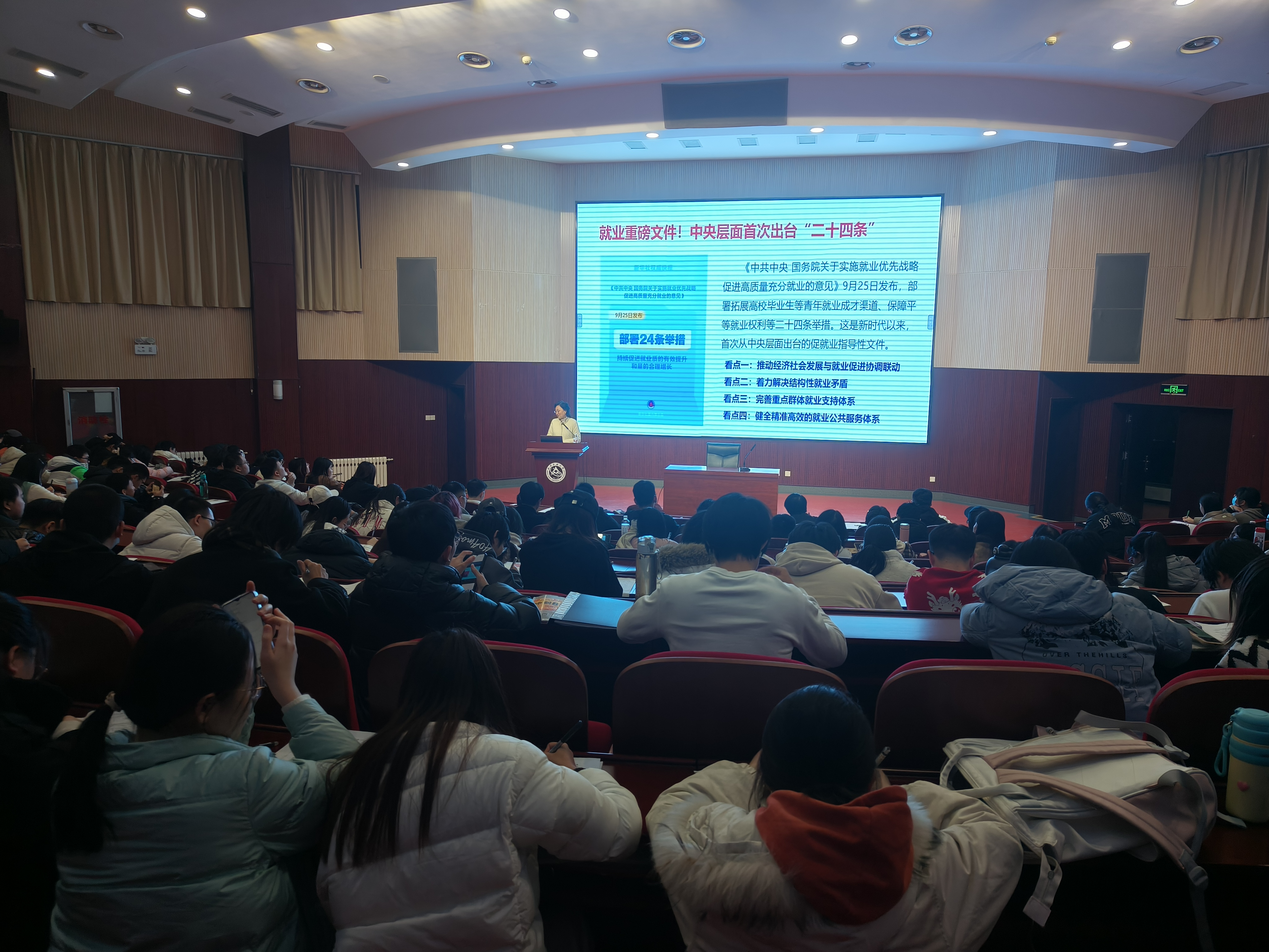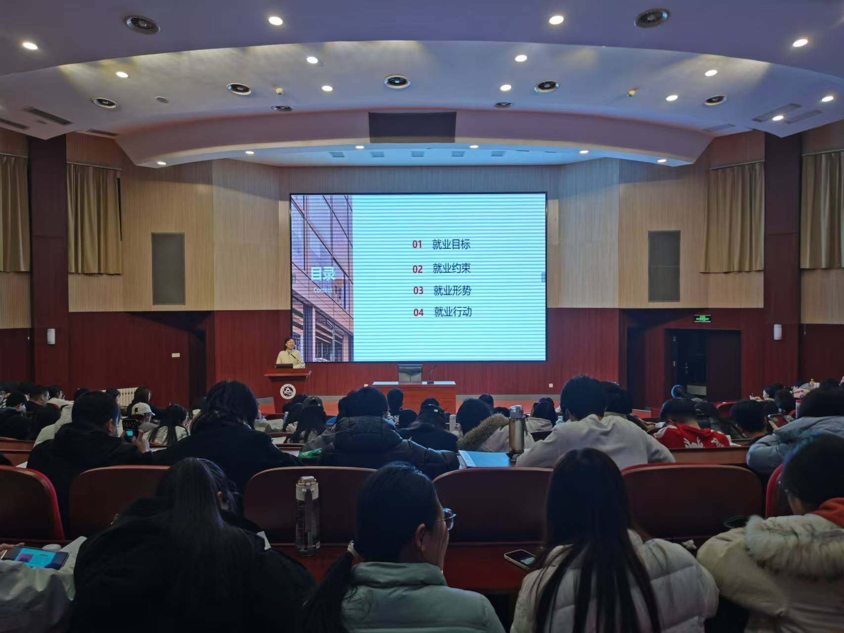 为进一步提高同学们的就业择业意识,以择业新观念打开就业新天地,促进高质量充分就业。校党委常委、副校长栗苹于12月4日下午18时在文化会堂为买球官方网站师生讲授就业形势与政策课。